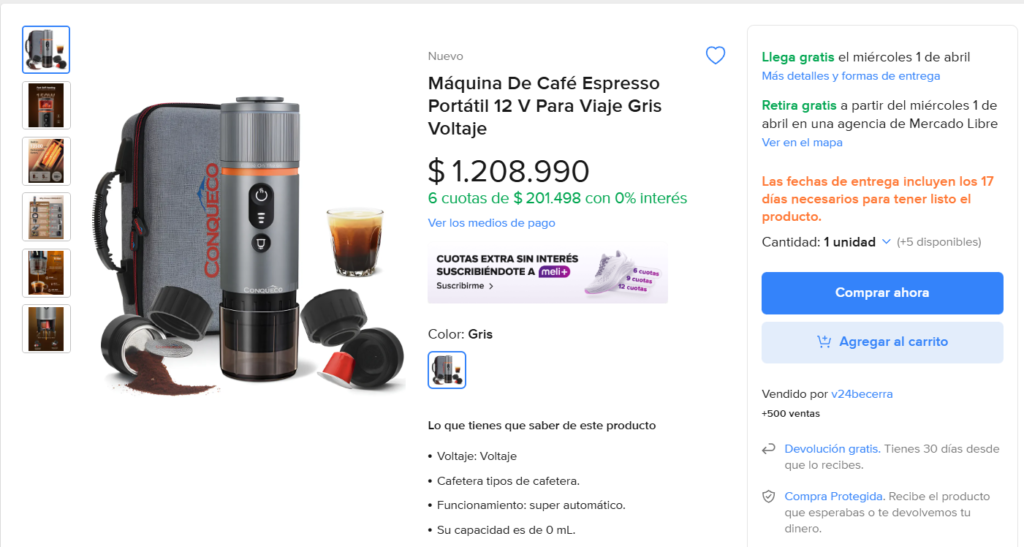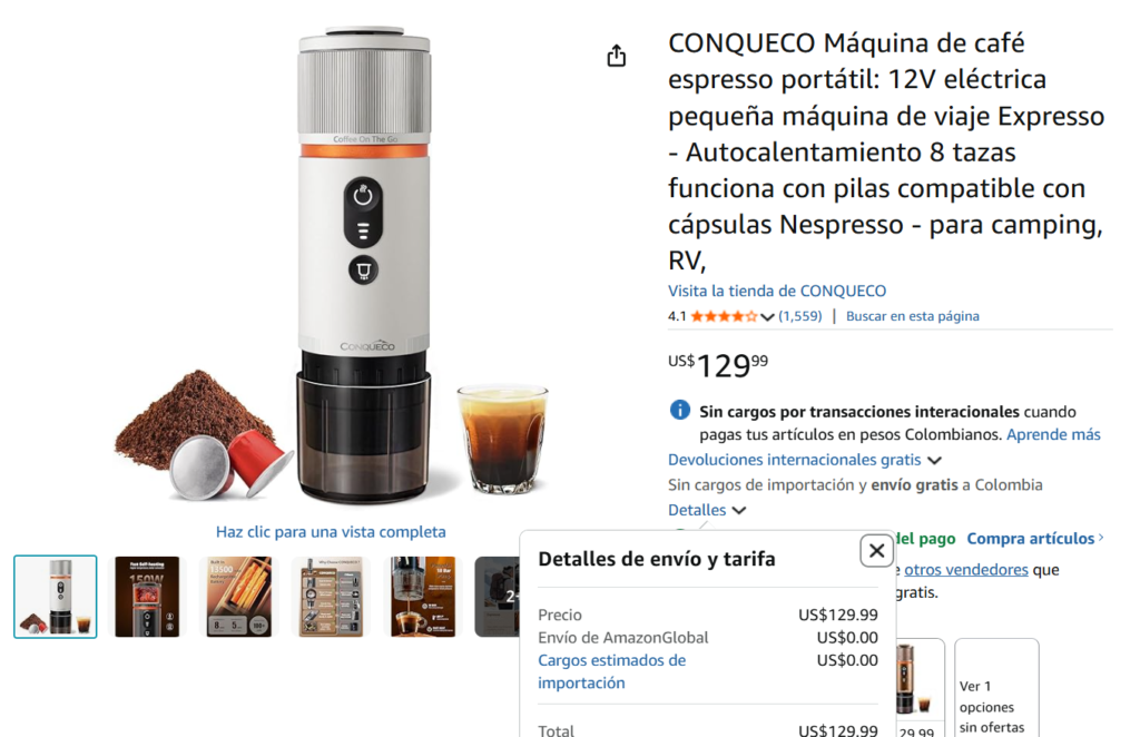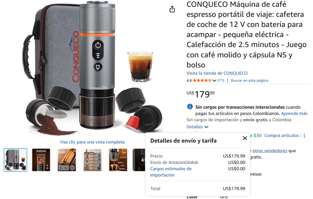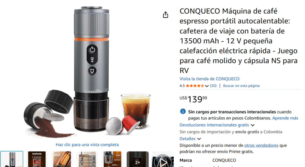 En Colombia podrás encontrar páginas dedicadas a la venta de la cafetera portátil Conqueco, pero lo que verás en muchos casos son los mismos productos con precios elevados. Con nuestros productos afiliados no tendrás ese problema, ya que compras directamente con la marca, sin intermediarios que aumenten el costo.